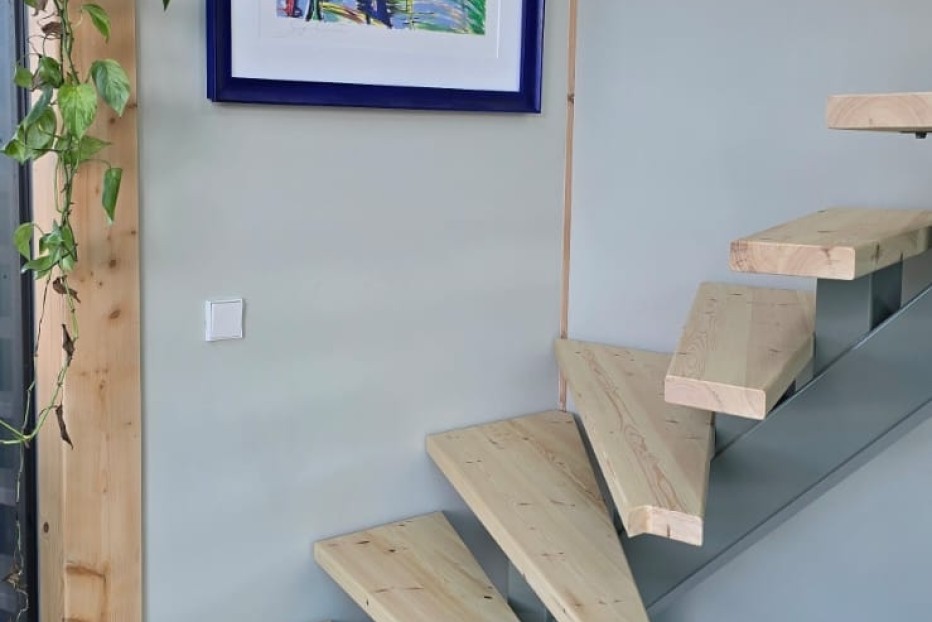 Stalen trappen met houten treden