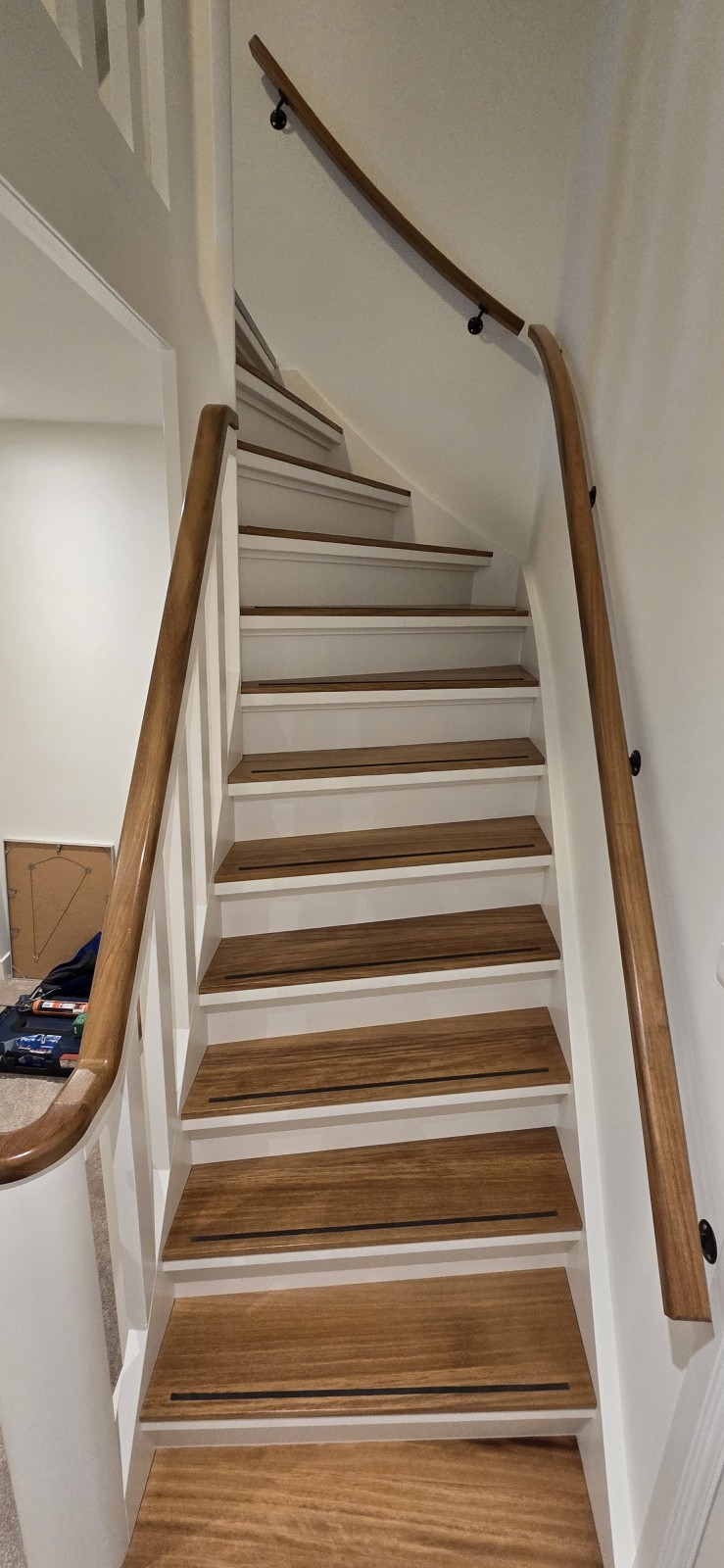 Leuningen ook uitgevoerd in Iroko.