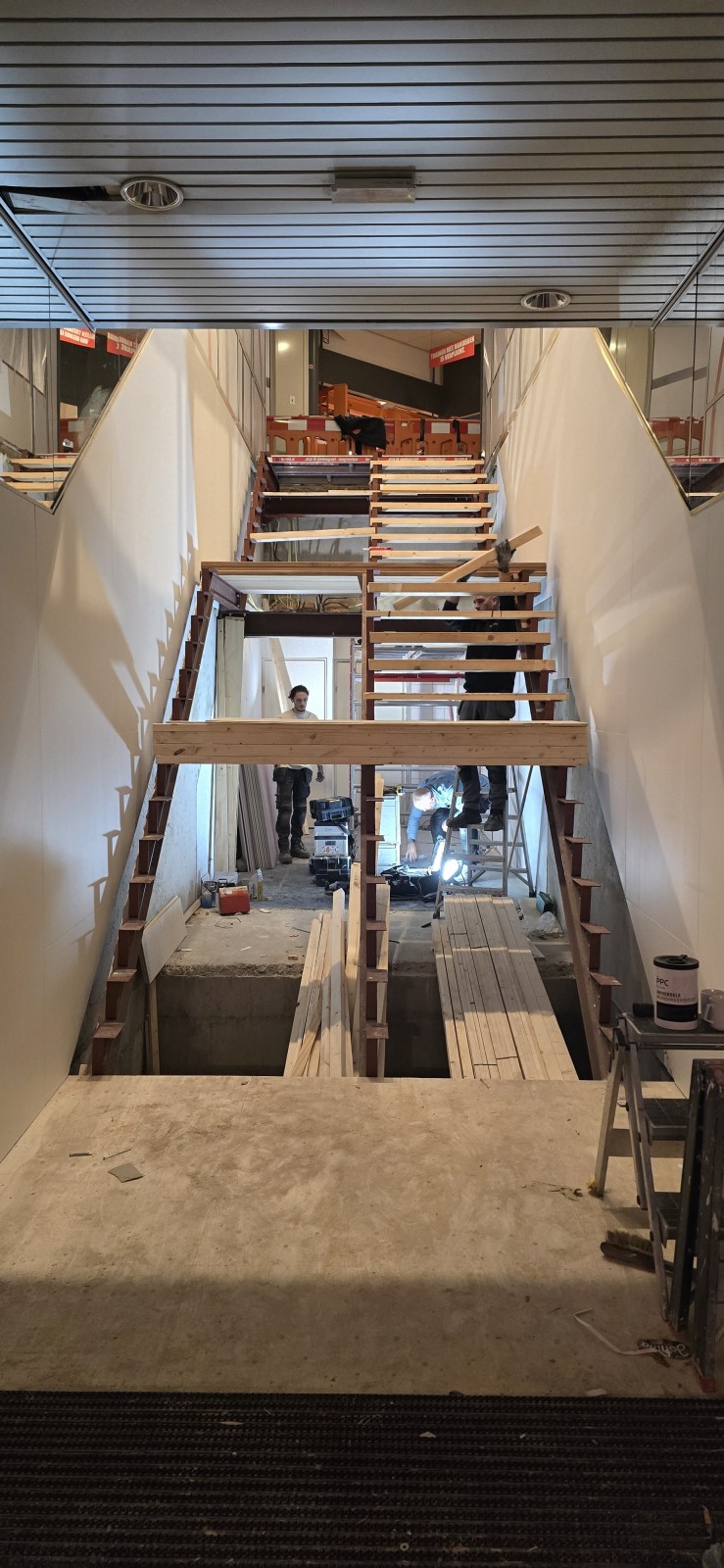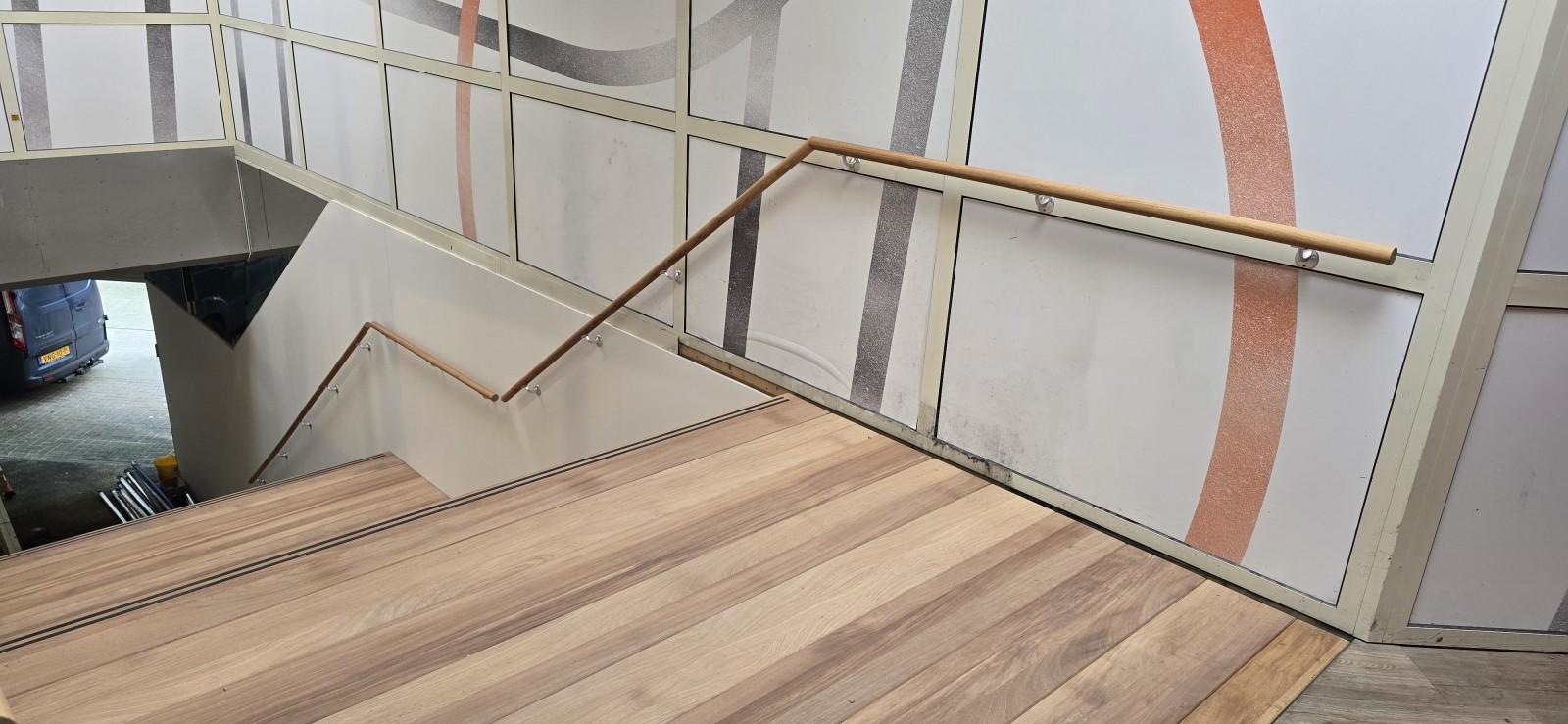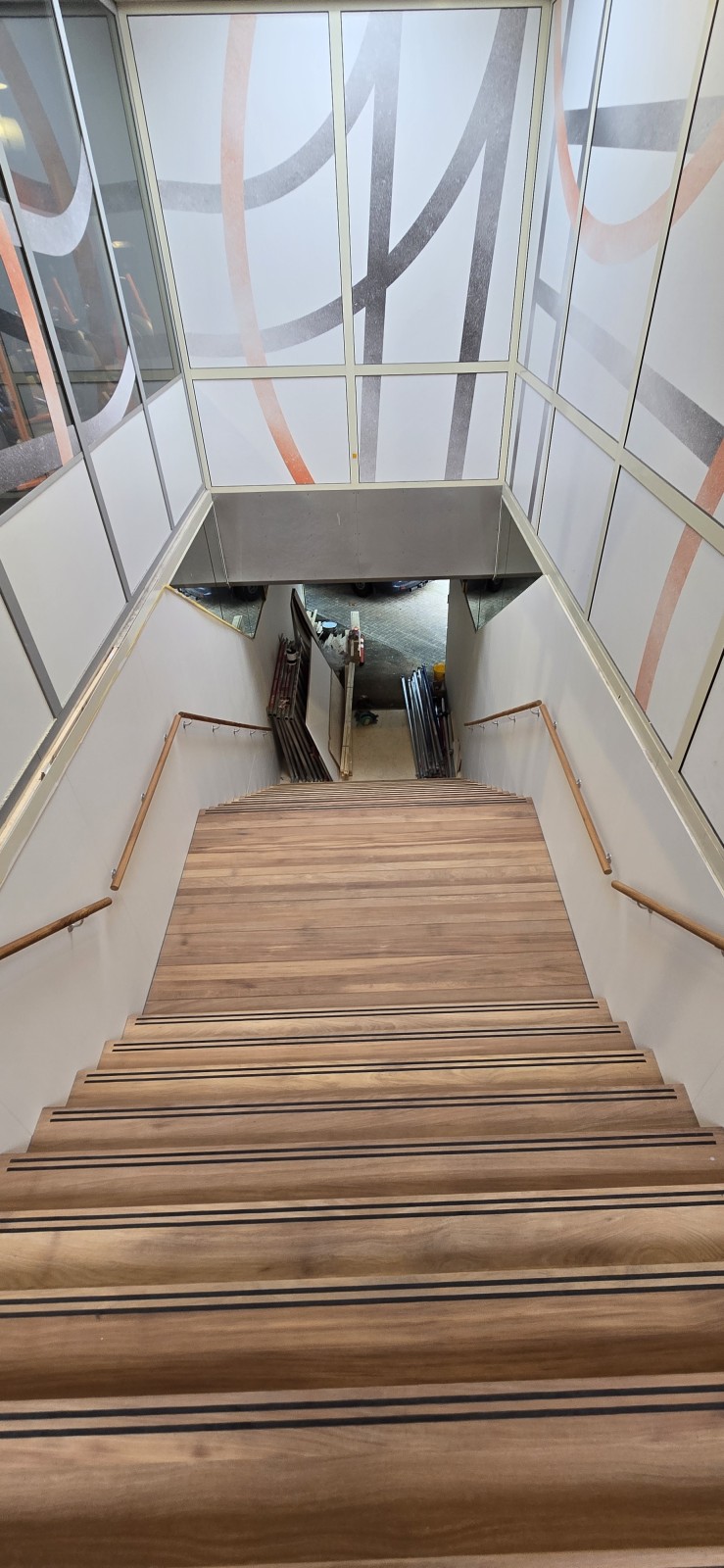 In Rotterdam mochten we een stalen frame voorzien van Iroko traptreden en stootborden.