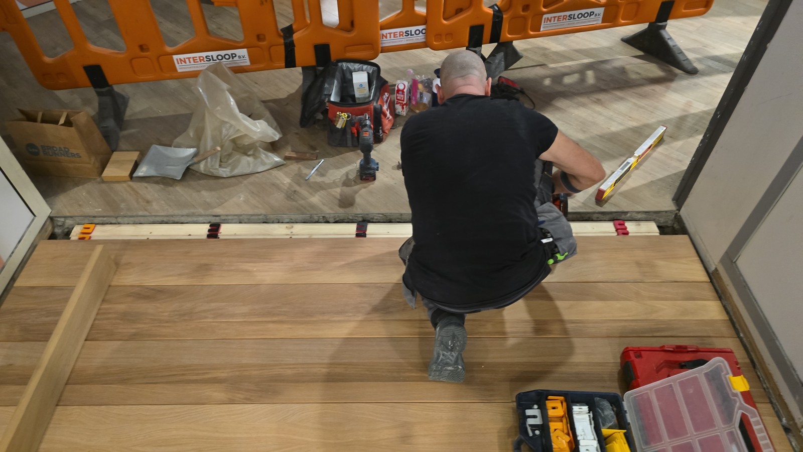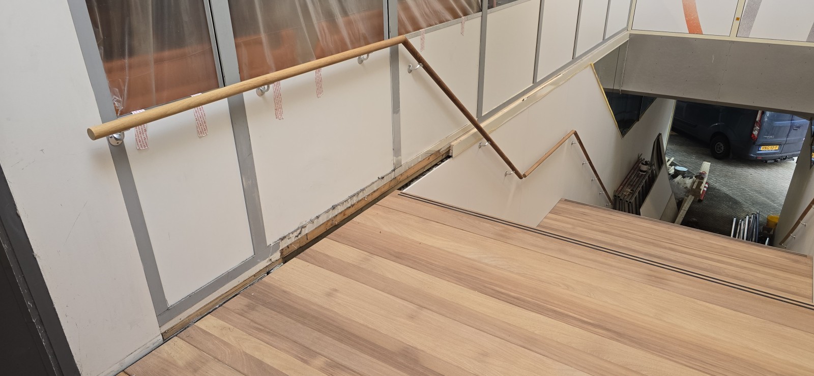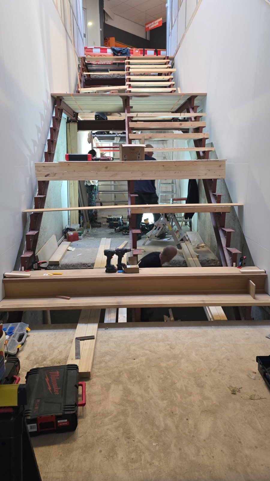 In Rotterdam mochten we een stalen frame voorzien van Iroko traptreden en stootborden.